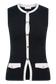 Upgrade your wardrobe with the JULIANNE Contrast Knit Top, a modern staple that combines elegance and ease. This sleeveless design features a button-front closure adorned with luxe gold buttons, complemented by a contrast neckline and center-front closure for a striking finish. Non-functional contrast pockets add a tailored touch, enhancing its sophisticated appeal. Crafted from soft knit fabric, it’s both comfortable and polished. Pair it effortlessly with the Julianne Contrast Knit Shorts for a coordinated look that’s perfect for brunch dates, city strolls, or any stylish outing.
