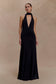 The JULIET Slinky Maxi Dress With Scarf is designed for fluid movement and versatile allure. Featuring a deep V plunge neckline and a fitted bodice, this silhouette skims the figure without the need for a zipper, ensuring a smooth, pull-on fit. The attached neck tie detail can be styled several ways, while the low back and gathered back detailing add a hint of drama. Fully lined for comfort, this dress is finished with a back neckline tie that completes its refined, adaptable design.