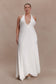 The JULIET Slinky Maxi Dress With Scarf is designed for fluid movement and versatile allure. Featuring a deep V plunge neckline and a fitted bodice, this silhouette skims the figure without the need for a zipper, ensuring a smooth, pull-on fit. The attached neck tie detail can be styled several ways, while the low back and gathered back detailing add a hint of drama. Fully lined for comfort, this dress is finished with a back neckline tie that completes its refined, adaptable design.