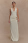 The KAIDEN Slinky Beaded Maxi Dress is made to command the room. Designed with a daring deep plunge neckline and a sleek, fitted bodice, this fully lined silhouette features a ruched hip with a cut-out detail, elevated by gleaming beaded hardware. A side leg split adds movement and allure, while the closed back balances the boldness with a refined finish. Perfect for evening events, red carpet moments, or any occasion that calls for confident glamour.