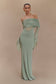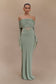 One Shoulder Slinky And Mesh Maxi Dress - Basil