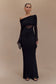 One Shoulder Slinky And Mesh Maxi Dress - Black
