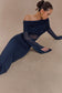 One Shoulder Slinky And Mesh Maxi Dress - Midnight Blue
