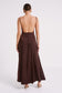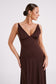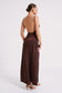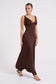 This is a sleeveless maxi dress with an open back and thin shoulder straps. Its plunging V-shaped neckline paired with the soft satin fabrication and visible underbust seams gives it an elegant vintage vibe that’s as enchanting as it is timeless. Clean front and back seam lines act as subtle accents for the fitted bodice and full-length skirt, further amplifying the dress’s tasteful, classic appeal. Pair with a clean makeup look and elegant shoes like Fleur Thin Strap High Heels.