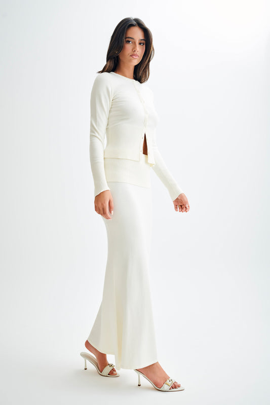 Knit Maxi Skirt With Ribbed Waist - Ivory