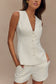 The KATELYN Short Sleeve Suiting Top combines classic tailoring with a modern edge. Featuring a sleek V-neckline and button front closure, this structured top creates a flattering, streamlined silhouette. The panelling detail enhances its refined shape, while the sleeveless design adds versatility and ease of movement. Fully lined for a comfortable fit, this top is perfect for pairing with tailored trousers or skirts, making it an ideal choice for sophisticated, everyday style.
