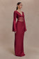 Long Sleeve Satin And Mesh Maxi Dress - Wine