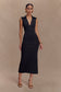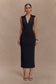 The KEAGAN Sleeveless Midi Dress delivers contemporary polish with timeless appeal. Featuring a deep V neckline with sharp collar detailing, this fitted silhouette is defined by vertical seam lines that contour the body for a sleek, elongated look. A closed back and centre back split adds a refined finish, making Keagan ideal for power dressing that doesn’t compromise on femininity. Perfect for work, events, or elevated evenings out—this is structure, redefined.