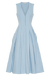 The KEELY Cotton Sleeveless Midi Dress boasts a flattering V neckline and a fitted bodice, highlighting a refined silhouette. Princess panel seams and a shaped waistline enhance its graceful structure, while the full skirt with tulle underlay adds a touch of volume. Functional centre-front buttons and discreet side pockets provide practicality without compromising style. This midi-length dress is fully lined, ensuring a comfortable yet sophisticated look for any occasion.