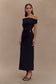 Own the spotlight in the KENDRA Scuba Jersey Midi Dress, a sculptural silhouette with elevated edge. Featuring an asymmetrical neckline and drop shoulder design, this dress is defined by its gathered shoulder and waist detailing that flatters the figure. Gold hardware accents add a luxe touch, while the fitted shape and midi length keep the look effortlessly refined. Unlined for a second-skin feel, this dress is your go-to for after-dark sophistication.