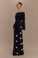 Off Shoulder Knit Rose Maxi Dress - Black/White