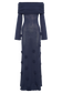 Off Shoulder Knit Rose Maxi Dress - Navy
