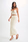 The KIRA Shell Cup Knit Top is a delightful blend of elegance and charm, perfect for adding a unique touch to your wardrobe. Featuring intricate crochet craftsmanship and shell-shaped bust cups adorned with pearl details, this cropped top exudes sophistication. The halter neck design and scalloped hem add a playful yet chic element, while the unlined construction ensures a comfortable fit. Style it with the Kira Knit Maxi Skirt for a coordinated summer look.