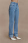 Straight Leg Cuffed Jeans - Classic Blue