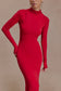 The KIYAH Slinky Cut Out Maxi Dress is a sleek, form-defining silhouette with directional detailing. Featuring a high neckline and long sleeves, it’s balanced by an open low-back cut-out with statement hardware for a touch of edge. Gathered shoulder accents create soft volume, while the fitted bodycon shape elongates the frame. Fully lined for a smooth finish and cut to a maxi length, this dress is the perfect fusion of sophistication and seduction.