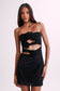The KORINNA is a strapless dress with a sweetheart neckline, a straight hem, and a sultry mini length. The statement-making cut-out details on the front serve as the centre of attention, meticulously adorned with floral design on the self-fabric to add drama, while the diamante hotfix embellishment makes a bold statement. Pair with the Dion Diamante Heel to complete the look.