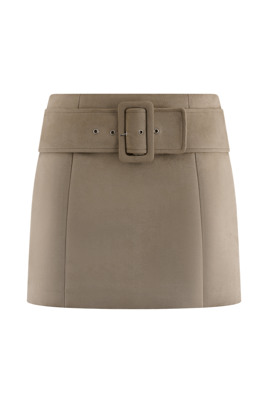 Hayes Faux Suede Belted Mini Skirt - Chocolate