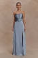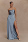 Satin Maxi Dress With Ruched Petals - Frosted Blue