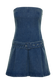 The LEE is a denim dress featuring a strapless neckline, pleated skirts, and a mini length. It is designed with a removable self-fabric belt that cinches the waist for an hourglass figure. Enclosed with a side zip for invisibility, this denim dress creates a polished and seamless appearance when worn.