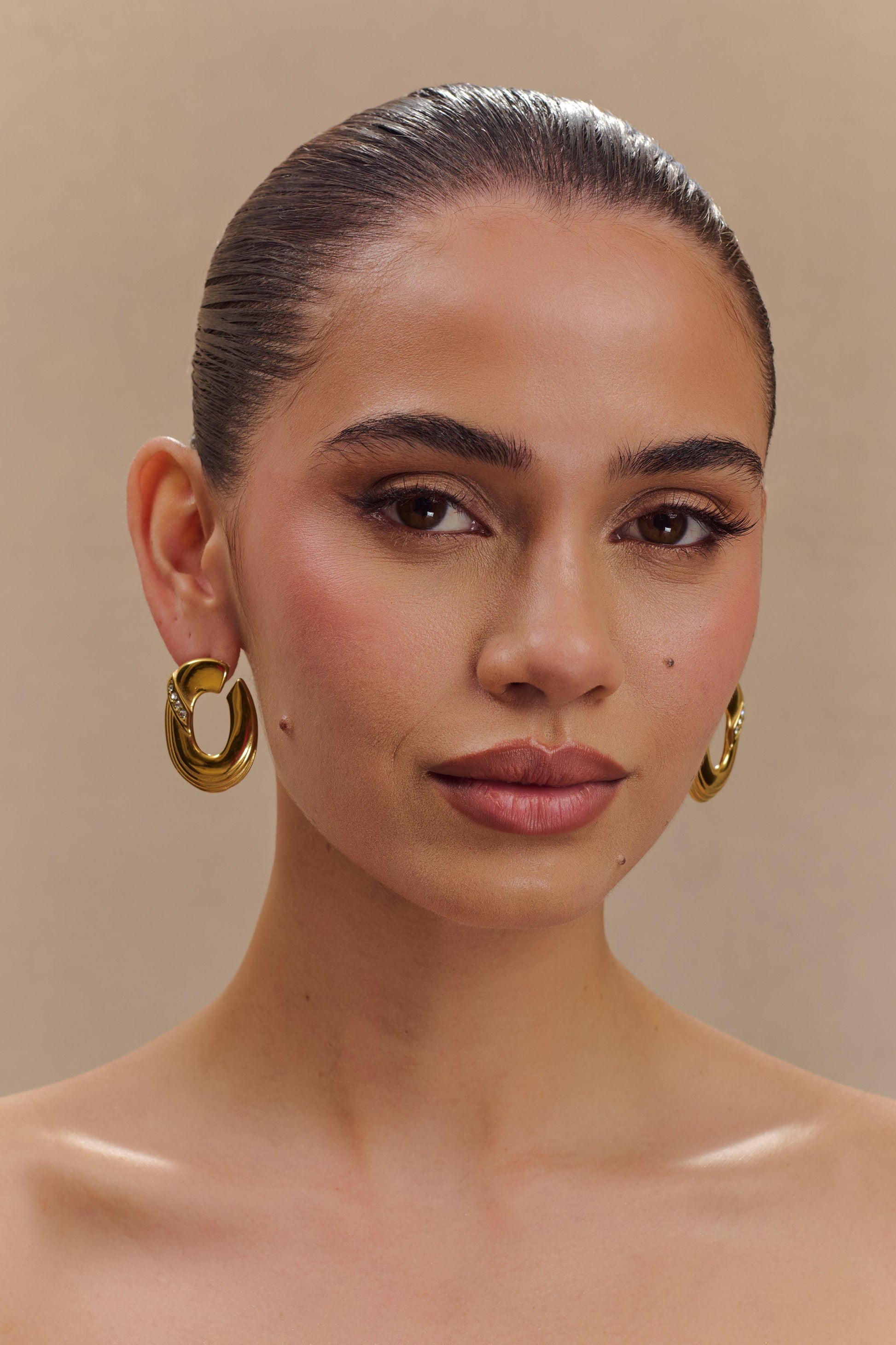 The LENNON Hoop Earrings are a sophisticated twist on a classic hoop, featuring an open circle shape with a textured finish that catches the light. A diamante panel adds a touch of sparkle, making these earrings perfect for elevating any look. Designed with a post stud for easy wear, they’re a chic addition to both day and evening outfits, bringing subtle elegance to your accessory collection.