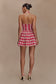 The LINDSAY Halter Knit Mini Dress combines bold structure with delicate details for a chic and playful look. The halter neckline and fitted bodice create a sleek, flattering silhouette, while the gathered skirt with a tulle underlay adds volume and movement. Designed with a mini length and a fitted knit construction, this dress is both comfortable and stylish, making it perfect for any occasion. With its combination of bold lines and soft, flowing elements, this dress is sure to turn heads wherever you go.