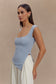 Asymmetric Recycled Nylon Top - Dusty Blue