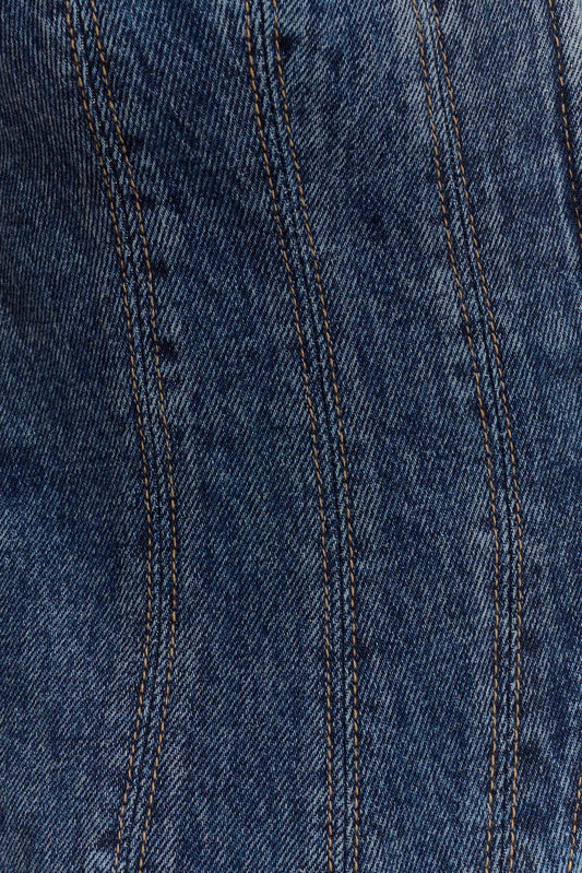 Step into sleek sophistication with the LORETTA Denim Maxi Skirt, designed to flatter with its mid-rise waistline and curve-skimming fit. The fishtail hem adds a touch of drama, while front and back paneling enhance its structured silhouette. Featuring a fly front closure and functional pockets, this piece balances utility with style. The clean, waistband-less finish gives it a refined edge, perfect for dressing up or down. Complete the look with the Loretta Cap Sleeve Denim Top for a coordinated ensemble that feels effortlessly elevated.
