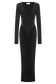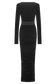 The LOUANNE Slinky Long Sleeve Maxi Dress is a striking silhouette designed with directional detail. A plunging V neckline is balanced by long sleeves, while a centre cut-out adds bold allure. Gathered accents shape the skirt, enhancing the fitted bodycon design with fluid dimension. Complete with detachable shoulder pads for a structured option, and cut to a maxi length, this dress blends versatility with after-dark sophistication.