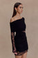 The LUXIE Lace Knit Mini Dress blends delicate detail with directional design. Featuring an asymmetrical neckline, the long lace sleeves and bodice offer a semi-sheer contrast to the soft knit overlay that wraps the bust and skirt. Designed in a mini length with a body-skimming fit, this dress is equal parts sultry and sophisticated—perfect for after-dark occasions and statement evenings.