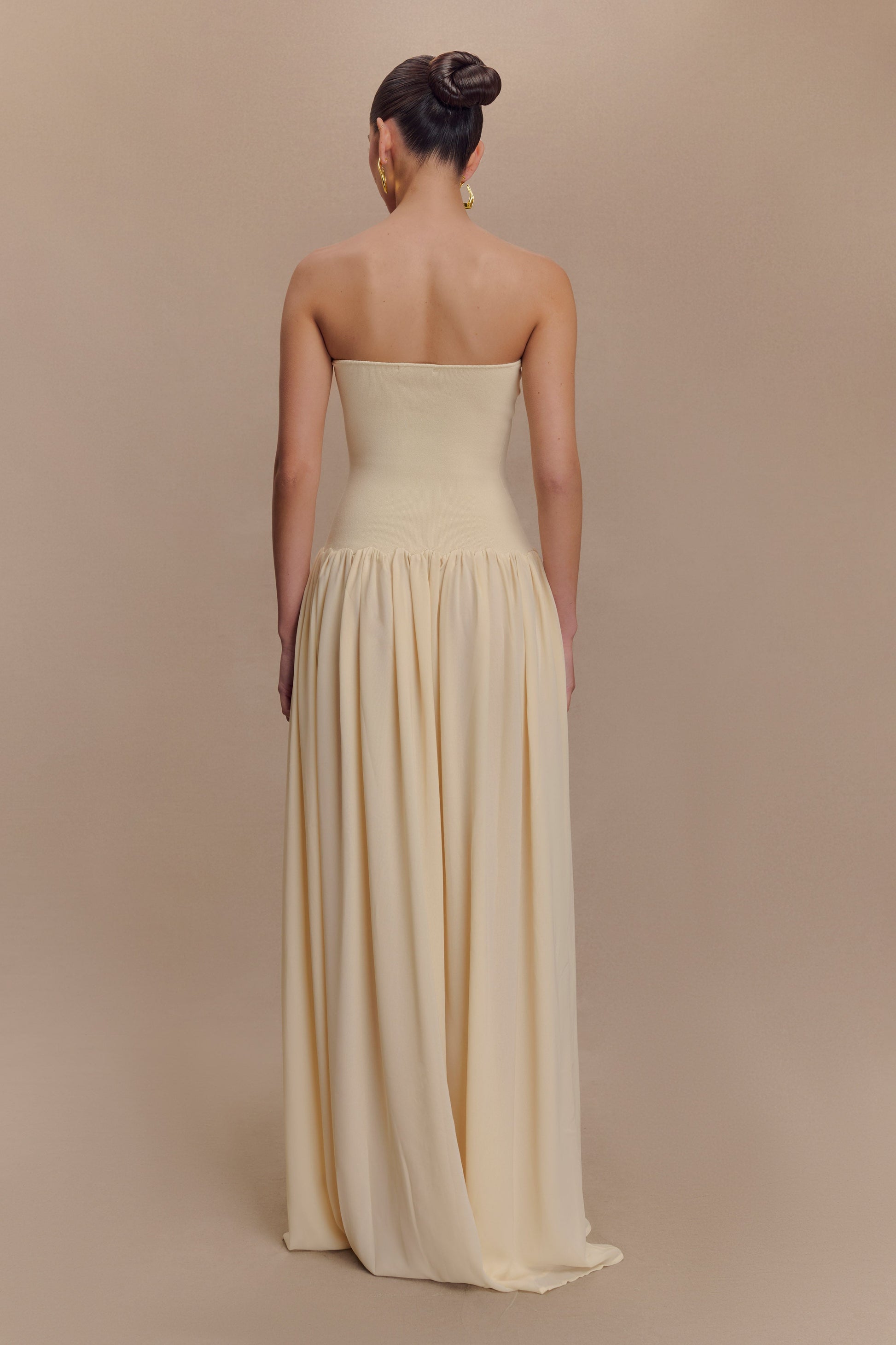 Knit And Chiffon Strapless Maxi Dress - Cream