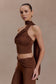 The LYDIA Slinky Asymmetrical Halter Top offers a modern, sculpted take on evening minimalism. Designed with a one-shoulder neck tie, it creates a striking neckline that frames the décolletage with effortless allure. Gathered bust detailing adds soft dimension, while the open back enhances the silhouette with a confident reveal. Fully lined and cut with an asymmetric hem, this fitted bodycon top contours the frame in slinky fabrication — sleek, polished, and made for elevated moments.