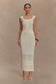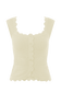 The MADELINE Scallop Knit Top is a delicate, day-ready piece designed to blend texture with timeless charm. Featuring a flattering square neckline, scalloped edges, and a rounded front hem, this longline silhouette is crafted in a detailed pointelle knit for a lightweight, breathable feel. The functional button front adds versatility, while the unlined finish keeps it effortlessly easy. Pair with the Madeline Scallop Knit Midi Skirt for a matching set that’s soft, refined, and perfect for any daytime occasion.