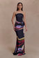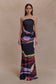 Strapless Slinky Maxi Dress - Multi Fluid Reverie Print