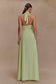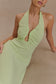 The MALAKHAI Chiffon Halter Maxi Dress is your go-to for effortless glamour, from sunlit lunches to evening soirees. Featuring a deep V halter neckline with subtle front gathering and a structured wire insert to hold its shape, this silhouette flatters with a bodycon fit through the bodice and a soft A-line flare at the hips. A side seam invisible zipper keeps the finish clean, while the sleek hardware neck closure adds a refined edge. Fully lined and designed without padding for a natural, easy fit, this dress is made to move with you from day to night.