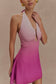 Malakhai Chiffon Halter Mini Dress - Ombre Pink