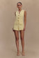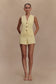 Elevate your layering game with the MALIKA Sleeveless Gold Button Vest. This stylish piece features a flattering V front neckline and a button front closure adorned with eye-catching gold decorative buttons, adding a touch of luxury to your look. The sleeveless design makes it perfect for warm weather or as a chic layering option in cooler months. Crafted from soft knit fabrication, the vest offers a comfortable fit while remaining unlined for a lightweight feel. Pair it effortlessly with the Malika Knit Tailored Shorts for a coordinated and polished ensemble.