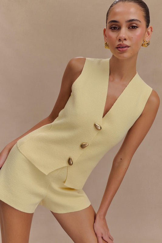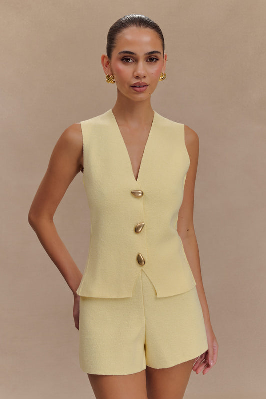 Sleeveless Gold Button Vest - Lemon