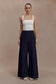 The MARAL High Waisted Dart Jeans bring a tailored sensibility to everyday denim. Designed with a super–high-rise waistline, these jeans feature front and back dart detailing that shapes and contours the silhouette with clean precision. A wide hemline adds a modern, elongated finish, while the centre-back zip with hook-and-eye closure creates a sleek, uninterrupted look. Complete with side pockets for effortless wear, these jeans blend structure and ease in one elevated staple.