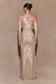 The MARCIA Diamante Long Sleeve Maxi Dress is a striking blend of glamour and elegance. Designed with an asymmetrical neckline and long sleeve, this bodycon dress hugs your curves to perfection. The intricate diamante mesh fabrication glistens with every move, offering a dazzling touch to this timeless piece. Crafted from a stretch fabric and mesh-lined for comfort, the dress moves with you, ensuring both style and ease. The maxi length adds an air of sophistication, making it the ideal choice for evening events, parties, or any occasion where you want to shine with confidence.