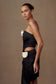 The MARGOT Strapless Rose Corset exudes timeless elegance and sophistication. With its strapless straight neckline and corset-shaped hem, this piece offers a flattering and feminine silhouette. Designed to be fitted, it accentuates your curves beautifully. The hook and eye centre back enclosure ensures a secure fit with a touch of glamour. Featuring an overlay bust panel and delicate flower applique at the centre front, this corset adds a romantic and enchanting touch to any ensemble. Complete the look with the Margot Rose Mini Skirt.