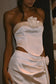 The MARGOT Strapless Rose Corset exudes timeless elegance and sophistication. With its strapless straight neckline and corset-shaped hem, this piece offers a flattering and feminine silhouette. Designed to be fitted, it accentuates your curves beautifully. The hook and eye centre back enclosure ensures a secure fit with a touch of glamour. Featuring an overlay bust panel and delicate flower applique at the centre front, this corset adds a romantic and enchanting touch to any ensemble. Complete the look with the Margot Rose Mini Skirt.