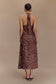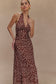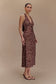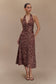 Satin Halter Midi Dress - Brown Polka Dot Print