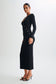 Long Sleeve Buttoned Knit Maxi Dress - Black
