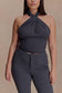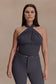 The MARION Cross Over Top is a modern statement piece with a sleek, cropped silhouette. Featuring a cross halter neckline that fastens with a back button closure, it frames the shoulders with bold simplicity. Fully lined for a smooth fit and finished with an exposed centre back zip, this top pairs effortlessly with tailored trousers or its coordinating bottoms for an elevated set moment.