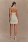 The MARIPOSA Slinky Halter Mini Dress is designed to turn heads from every angle. Featuring a halter neckline with a sleek hardware clasp closure, this mini silhouette showcases an open back and flattering ruched side seams that hug the body in all the right places. Fully lined for a smooth, confident fit, this dress is your go-to for nights out, summer parties, or any moment that calls for bold, effortless glamour.