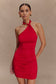 Slinky Halter Mini Dress - Red
