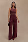Boat Neck Sheer Mesh Top - Mahogany