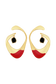 The MARNA Large Hoop Earrings With Stones – Gold bring contemporary artistry to a timeless silhouette. Crafted in an asymmetrical, sculptural hoop design, each earring features a gold-plated base with embedded enamel detailing and a striking black stone centerpiece. The statement form is balanced by its sleek finish, while a stud post and butterfly backing ensure secure wear. Designed to elevate any look, these earrings embody refined edge — bold, elegant, and undeniably MESHKI.