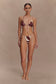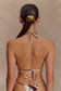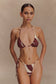 The MARQUISE Bikini Top is your go-to for sun-drenched days and poolside lounging. Designed in a classic triangle silhouette, it features ruched cups with adjustable halter neck and back ties for a custom fit. Fully lined for comfort and support, this bikini top pairs bold print with timeless shape—perfect for styling for your own signature swim look.
