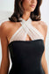 Step into elegance with the MARYAM Tulle Bow Mini Dress, where sophistication meets romance in a harmonious fusion. Adorned with a princess neckline and a fitted bodice, this dress exudes timeless allure. Lined for comfort, it features an A-line skirt that ensures a flattering silhouette for any figure. Adding a touch of whimsy and charm, the mesh functional halter with a tulle-lined back bow captivates attention. Finished with a convenient centre back zip, the Maryam dress is the epitome of chic style, ideal for making a memorable statement at any event.